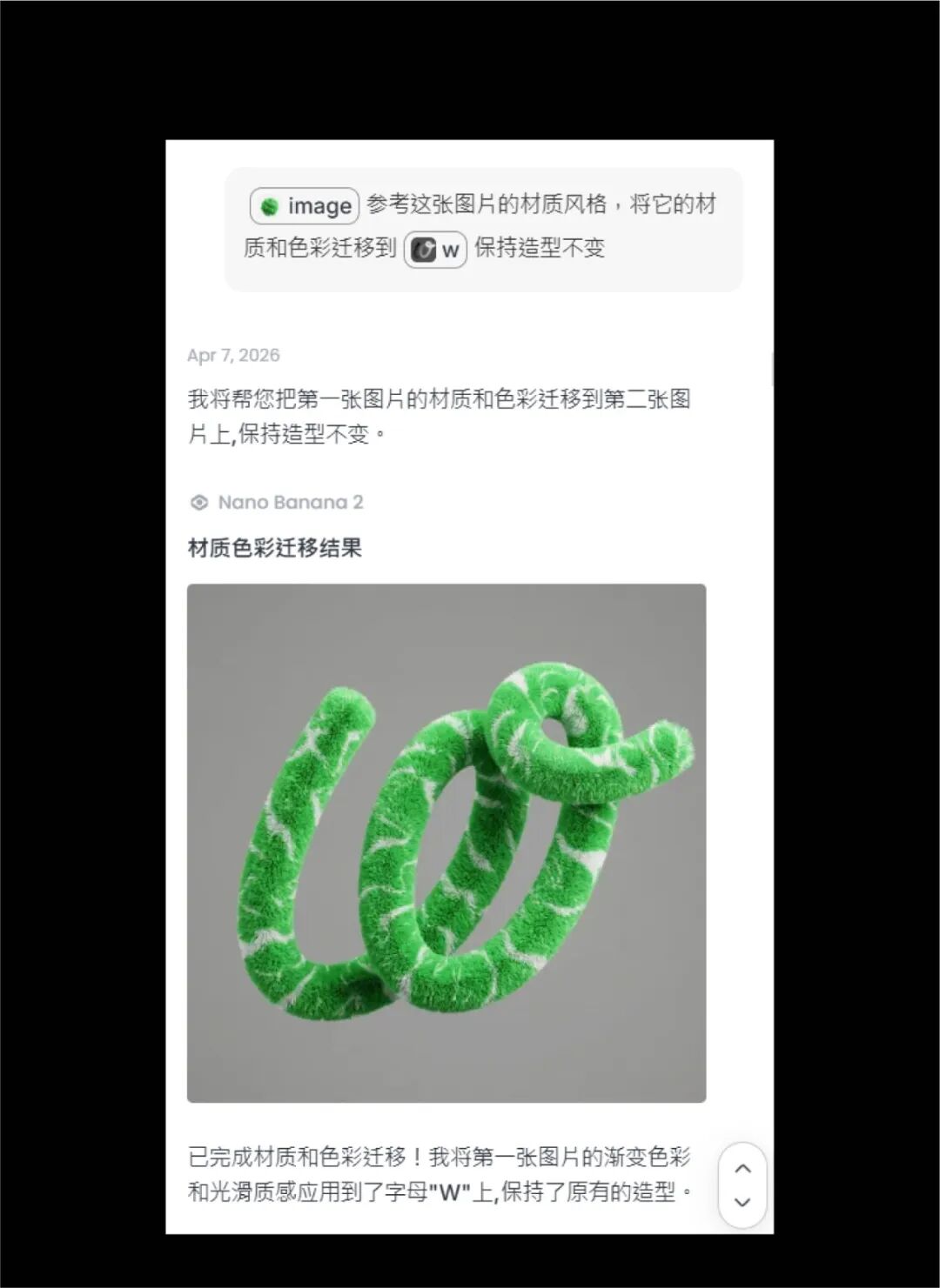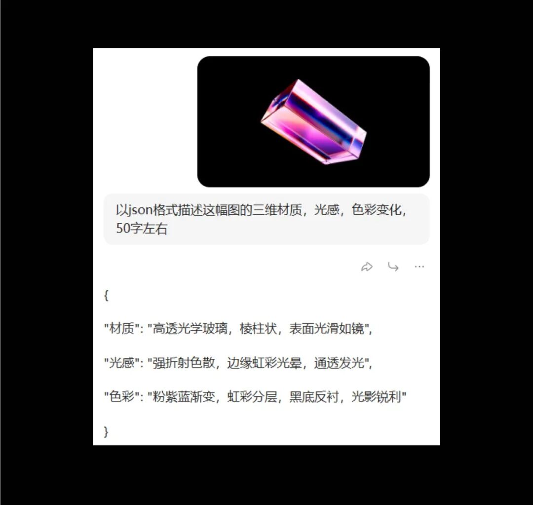 因为这里我们不需要ai发挥图形的造型变化,所以只需把描述词限定在材质光感色彩等地方。