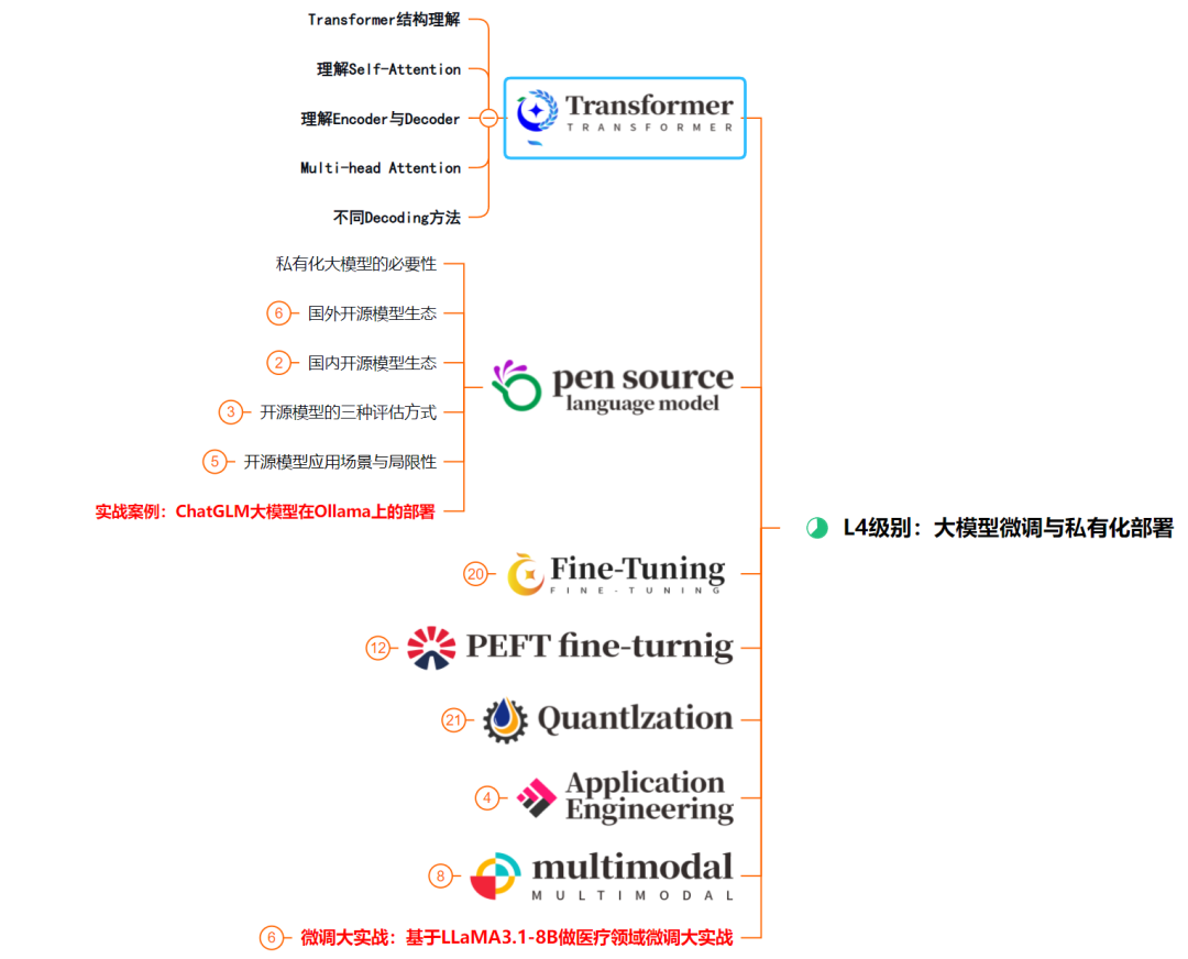 第三阶段实战篇:大模型的微调和私有化部署,我们会更加深入的探讨Transformer架构,学习大模型的微调技术,利用DeepSpeed、Lamam Factory等工具快速进行模型微调;并通过Ollama、vLLM等推理部署框架,实现模型的快速部署。