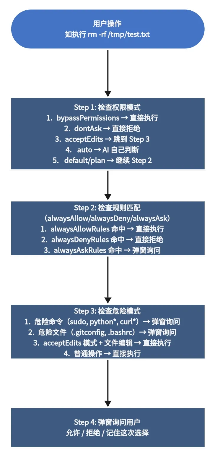 又在此基础上定义了规则,支持:alwaysAllow/alwaysDeny/alwaysAsk。