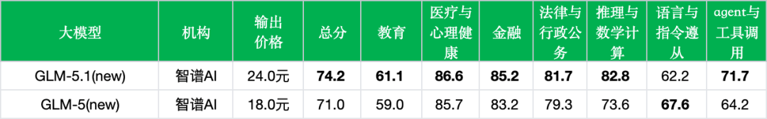 需要说明的是,本次评测侧重中文场景下的综合能力考察。GLM-5.1此次迭代的核心发力点——8小时级长程代码工程、SWE-Bench Pro实战修Bug、从零构建完整代码仓库等能力,在当前评测框架中并未得到充分体现。对这些能力感兴趣的读者,可参考文末的官方评测数据获得更全面的了解。