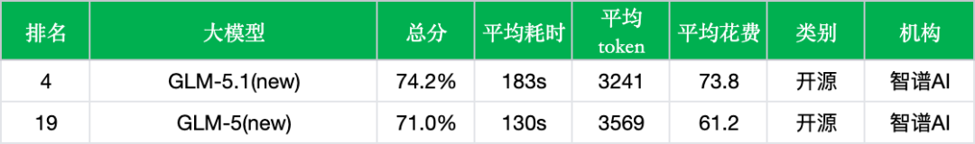 - 对比其他厂商的新模型:GLM-5.1(74.2%)超过了ERNIE-5.0(70.9%)、DeepSeek-V3.2-Think(70.9%)等厂商近期发布的新模型,但与榜首的Doubao-Seed-2.0-pro(76.5%)仍有2.3个百分点的差距,与qwen3.5-plus(74.6%)基本处于同一水平线。