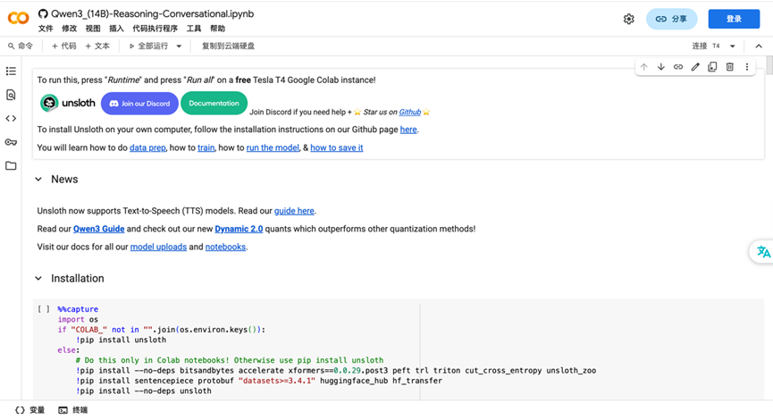 Unsloth[38]是一款用于大语言模型微调的开源工具,旨在解决模型微调过程中训练速度慢、显存占用高等问题。它通过手动优化计算步骤、手写GPU内核和动态量化技术,在不改变硬件的前提下提升训练和推理的速度及性能。其优势显著,在单GPU上训练速度最高可提升10倍,多GPU系统上最高提升32倍,内存占用最多可减少70%以上。支持Llama-3、Mistral、Phi-4等多种主流大语言模型,还能支持长上下文训练。此外,它具有良好的兼容性,支持Linux和Windows(通过WSL)操作系统,与Hugging Face的TRL、Trainer等工具无缝集成。用户可在Google Colab或Kaggle Notebooks上免费快速体验,其开源特性也为开发者提供了广阔的探索空间。该平台的教程笔记本界面如图5.4所示。