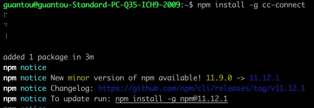# Stable version npm install -g cc-connect