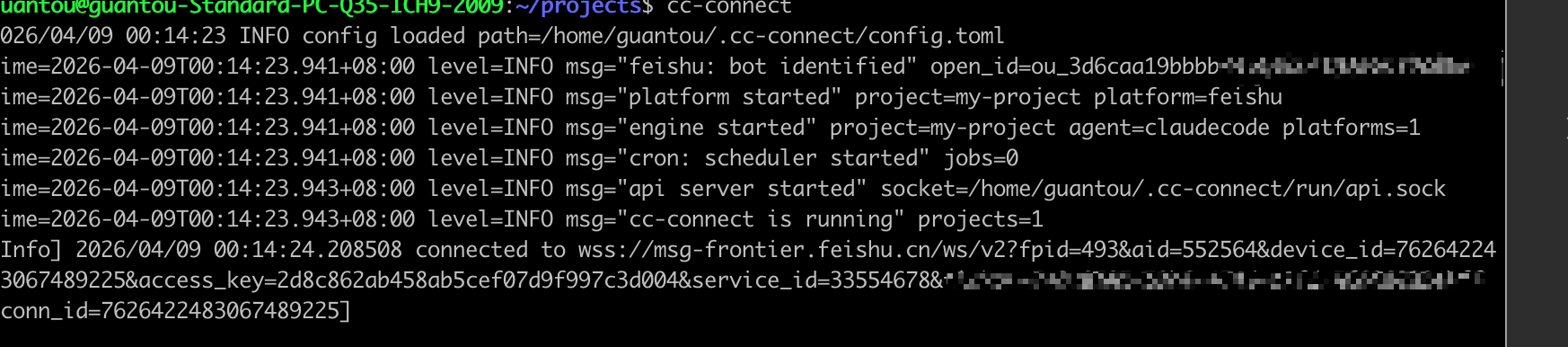 配置完成后,在命令行输入 cc-connect