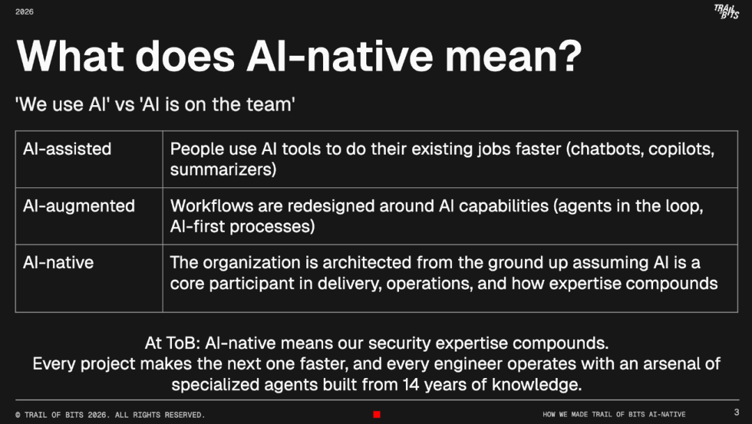 而Trail of Bits做的「AI原生」,是彻底的结构性变革。