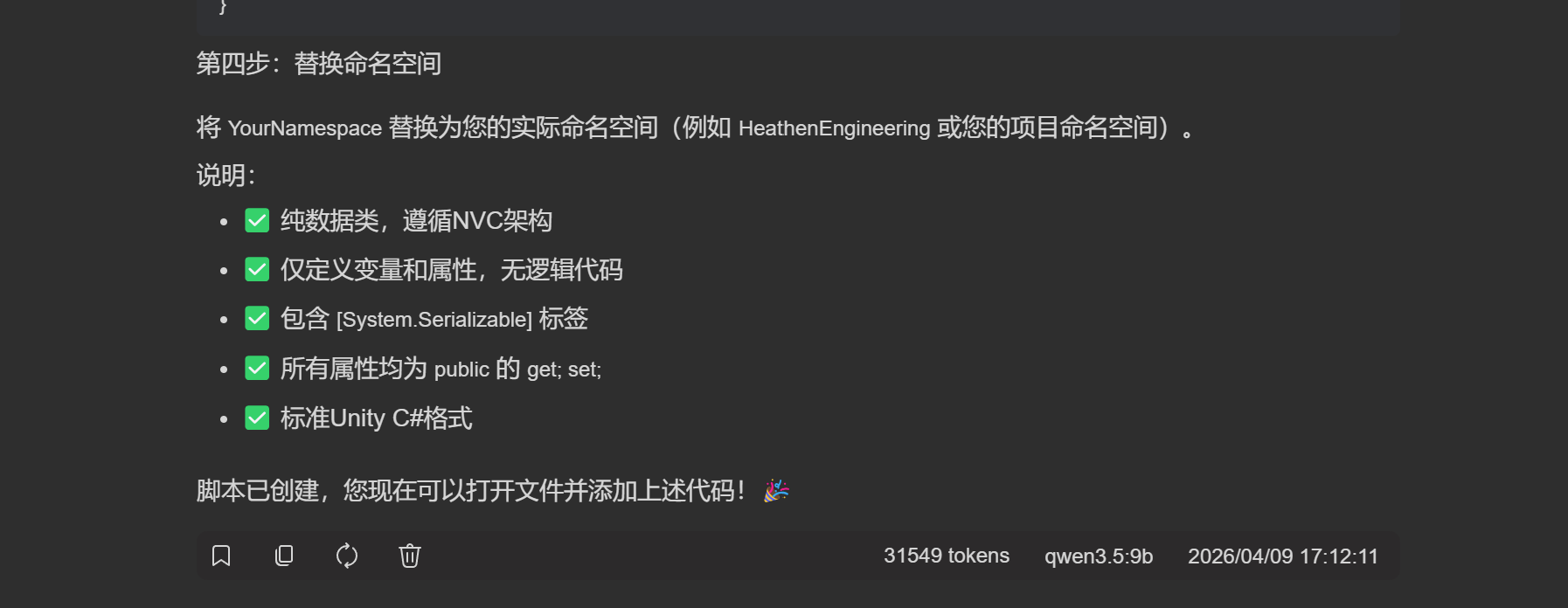 最后就是可以直接运行了:我们新建一个文件夹,输入相应的关键字,ai必须提出要使用unity mcp他才会明白,当他运行的时候弹出调用工具说明我们成功实现了5ire unity mcp的调度,当然其他的mcp如全栈的还有一些当然也可以搞大家不妨试试,只不过部分因为项目原因把mcp调度设置为本地利用json确认文件夹位置,所以就要在工具设置本地的相应的配置json了这里不多做赘述,大家不妨自己去试试。