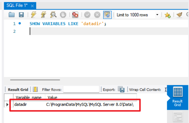 如果结果显示的路径是目标路径,那么恭喜你,整个迁移工作已大功告成!你现在的MySQL下的数据文件现在已经存储在您指定的D盘文件夹下了。