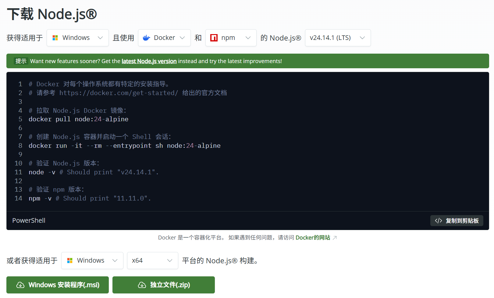 - 点击 "LTS"版本进行下载(推荐长期支持版本)