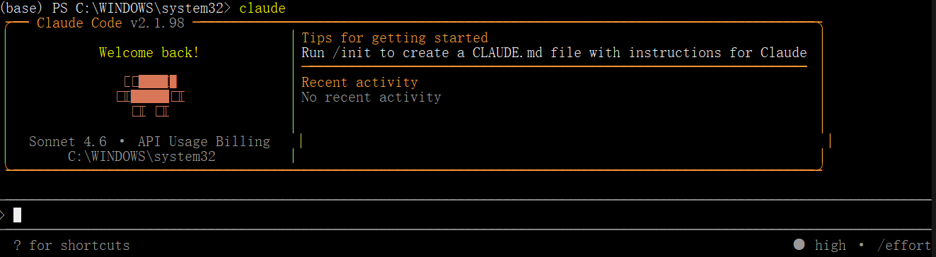 打开 PowerShell,直接启动 Claude Code: