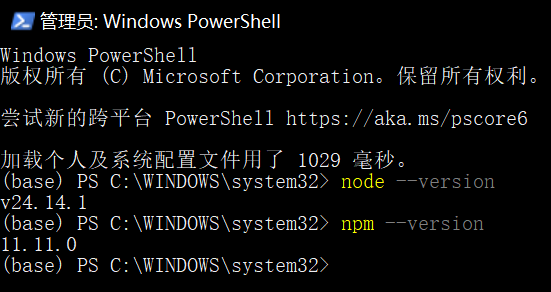 输入以下代码,看Node.js是否安装成功
