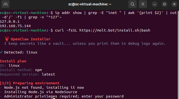 OpenClaw最近非常的火爆,我也找了一些资料安装了一下。采用的Ubuntu是比较新的Ubuntu22.04(相对较新和稳定的版本),采用的是VMware的虚拟机启动,确保状态的保存。