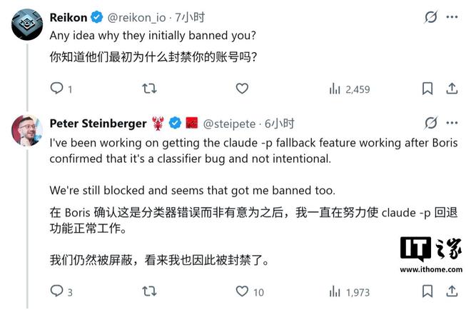 IT之家 4 月 11 日消息,“龙虾” OpenClaw 创始人 Peter Steinberger 昨日(4 月 10 日)在 X 平台发布推文,称其 Claude 账户因“可疑活动”遭 Anthropic 暂停服务。该推文引发热议数小时后,他的访问权限才被恢复。