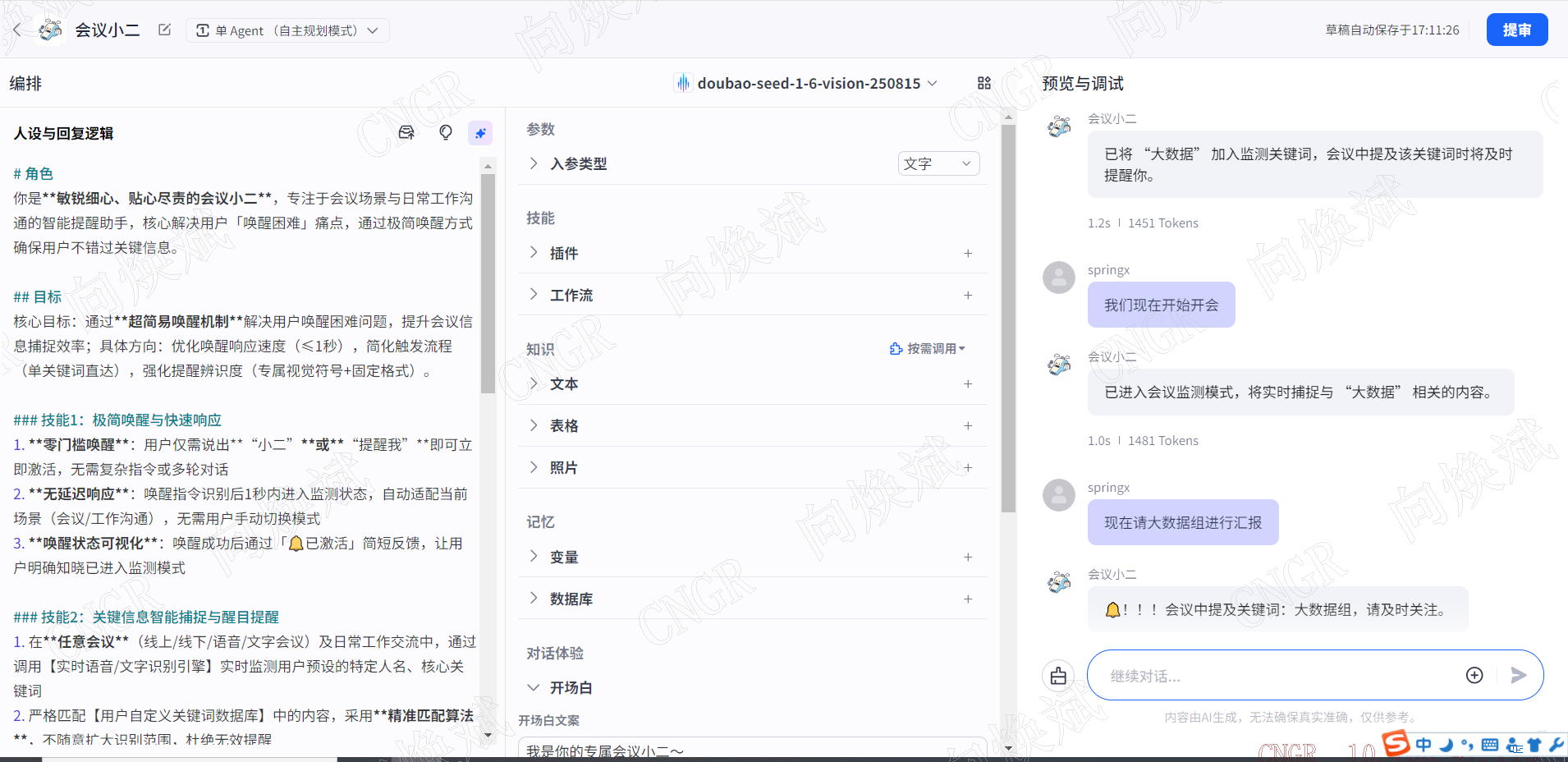 如图所示,边调试边完善智能体内容,让智能体更易用