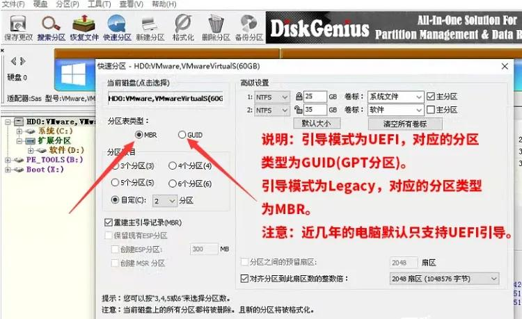 无损转换:借助第三方专业分区工具,在不删除分区、不清空数据的前提下,直接修改磁盘分区表格式。DiskGenius 和分区助手都支持这种方式——数据和系统可以保留,DiskGenius转换后系统盘转换后需要修复引导。而分区助手无损转换后自动修复引导,无需手动操作。