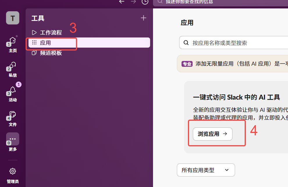 3、需要将已经创建好的 Slack App 添加到对应的 channel 中