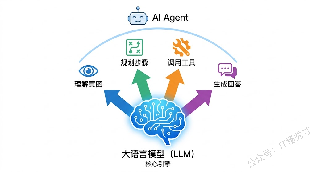 答案其实很简单——因为大模型就是 Agent 的大脑。