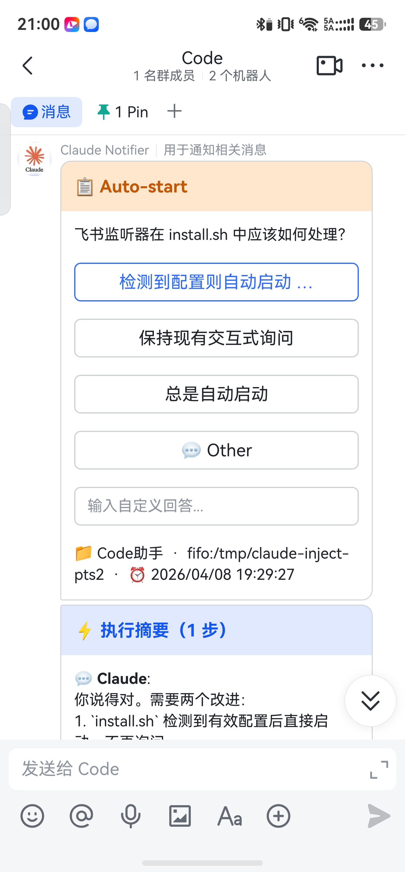 Agent Notifier 的做法很简单:把飞书变成你的远程终端控制器。