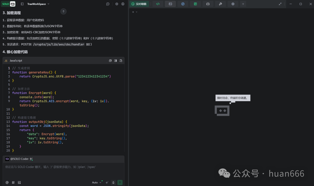 提示词:连接streamable-mcp-server服务,访问http://127.0.0.1:8787/crypto/js/lib/aes/cbc,分析登录框的加密逻辑。