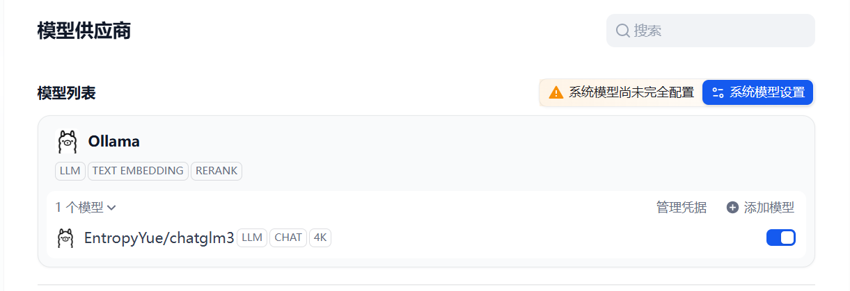 进入模型搜索选择页面,选择自己所需模型即可,这里博主选择的是ChatGLM3-6B模型是 ChatGLM 系列最新一代的开源模型,保留了前两代模型对话流畅、部署门槛低等众多优秀特性