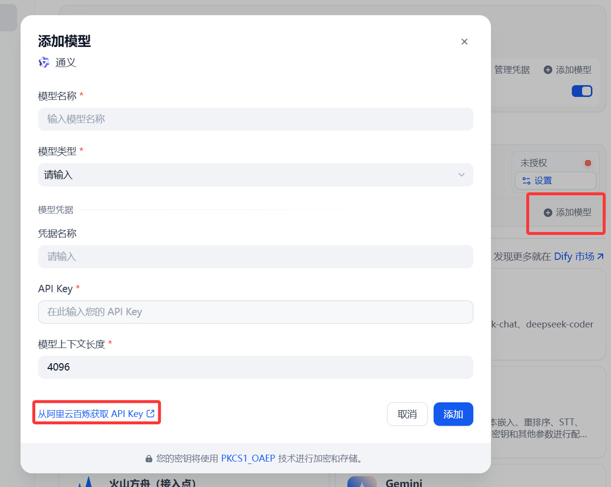下载通义插件,选择添加模型,点击进入阿里云百炼