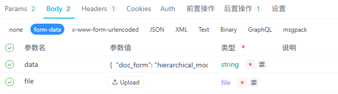 curl –location –request POST ’https://xxx/v1/datasets/知识库id/documents/文件id/update-by-file'; –header ‘Authorization: Bearer xxx’ –form ‘data=“{ ”doc_form“: ”hierarchical_model“, ”process_rule“: {