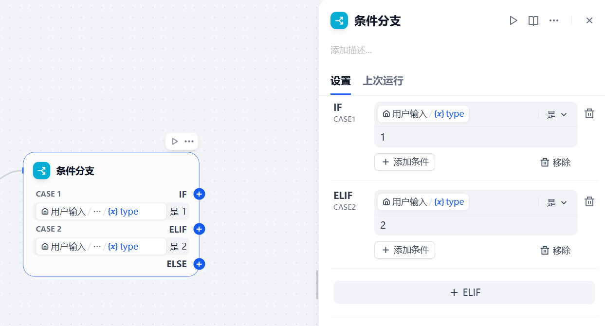 变量参数设置好后,开始编排逻辑,选择逻辑:条件分支