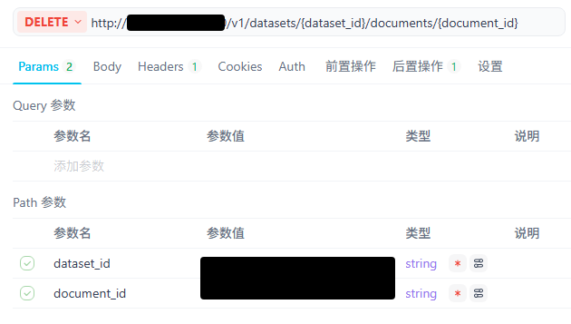 curl –location –request DELETE ‘http://xxx/v1/datasets/知识库id/documents/文件id'; –header ’Authorization: Bearer xxx‘