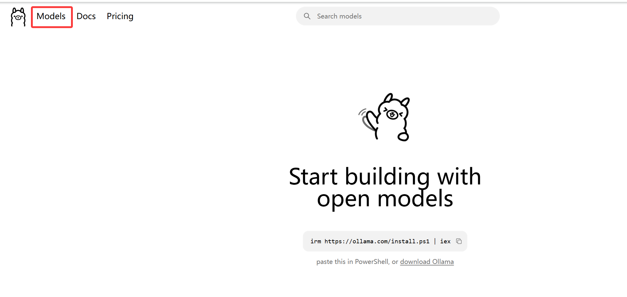 现在开始在ollama中下载部署本地模型,在ollama官网点击 Models
