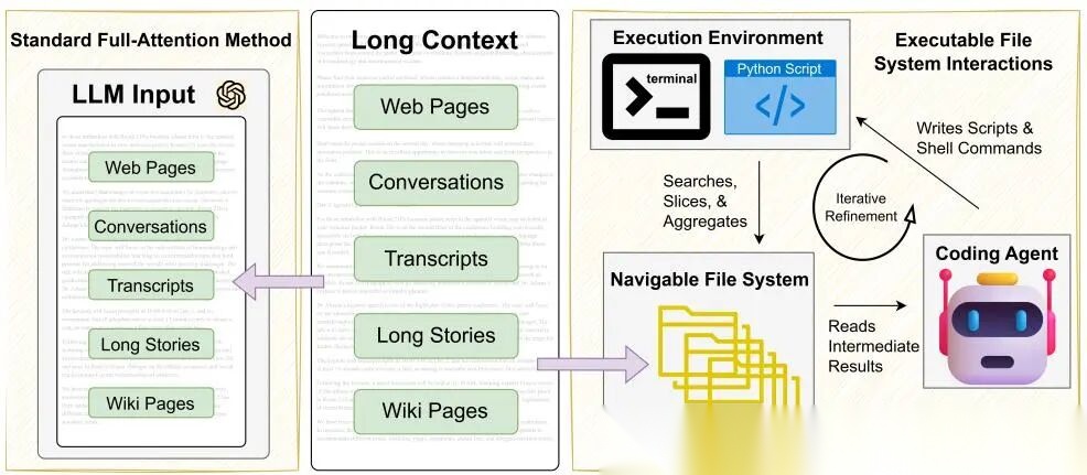 关键亮点:提出将长上下文处理重构为“文件系统导航 + 编码代理执行”的新范式,无需任务特定训练即可跨场景通用,并能自主涌现多跳检索与程序化推理策略。