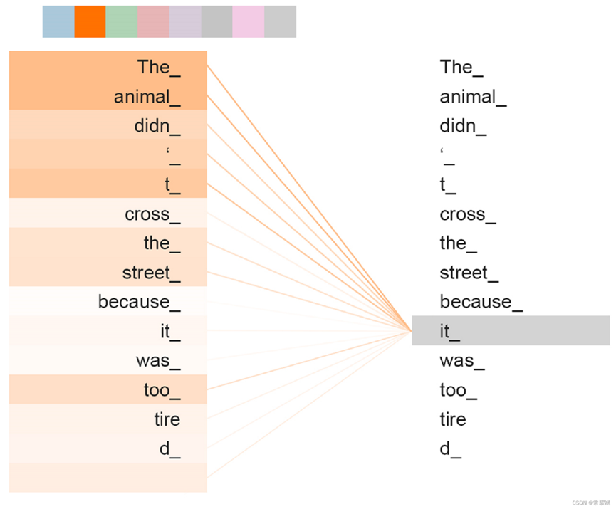 第二次进行深入理解后,脑子里想起来的东西越来越多,对query这一个句子,提取关键信息tired进行关联,这就是注意力作用的过程, 通过这个过程,我们最终脑子里的value发生了变化,变成了animal。