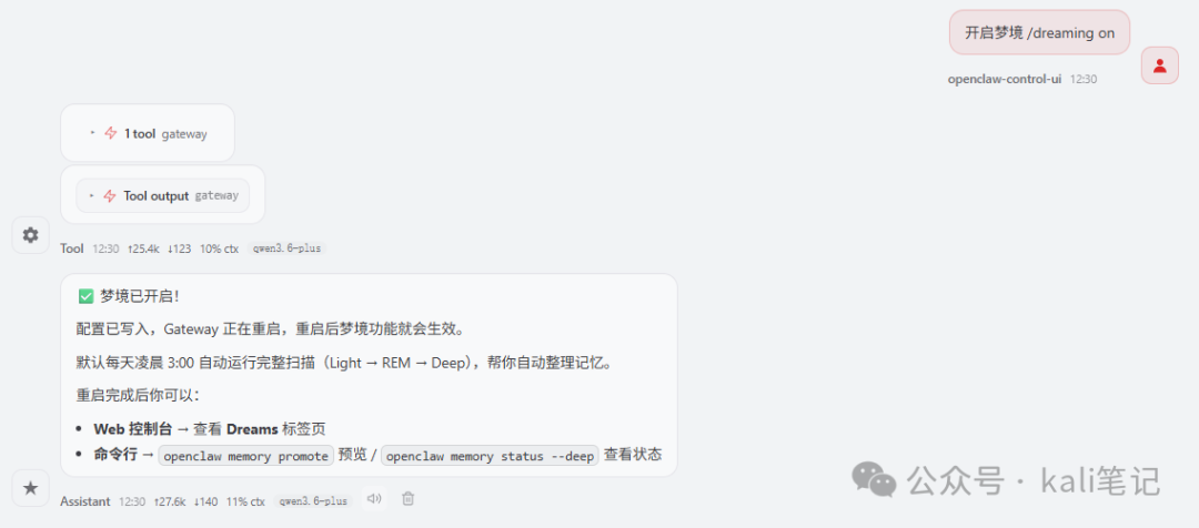它会在空闲时候在后台自动整理你的交互内容,把短期的重要信息提炼并提升到长期记忆(MEMORY.md),同时生成人类可读的”梦境日记”(DREAMS.md)。让你的 AI 越用越懂你。