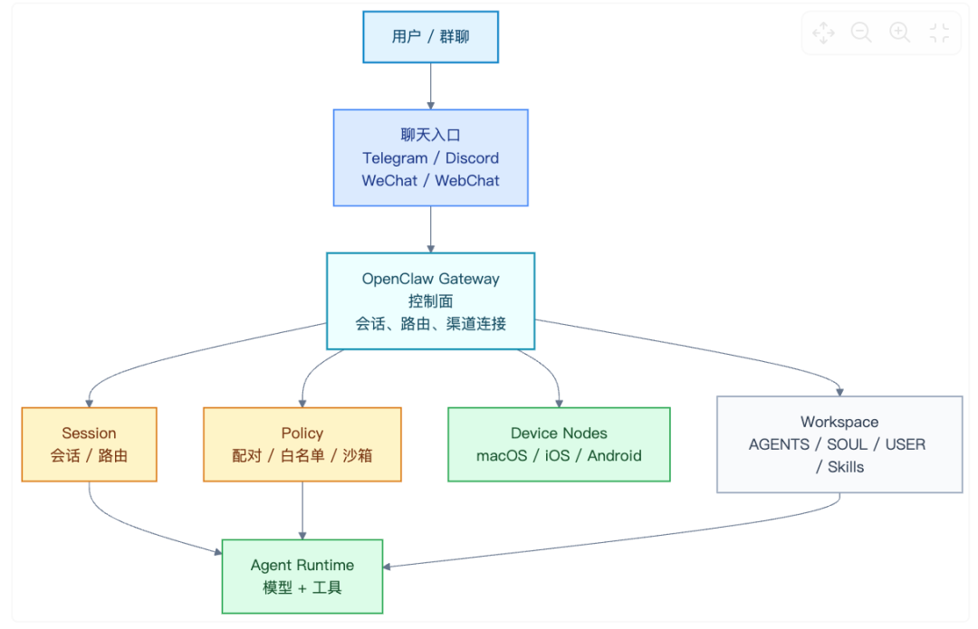 所以把 OpenClaw 简化成"一个工具箱",多少有些低估它了。它更像一个 Agent 版的个人通信与设备控制平面。