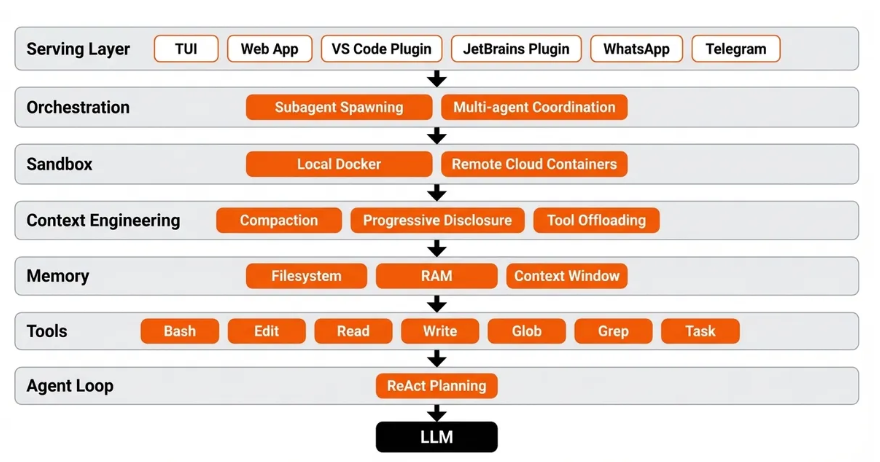 举个例子:Claude Code、OpenCode、Codex这些热门AI工具,本质上都是“harness(驾驭层)产品”——你可以替换它们内置的模型,但核心价值,全在harness(驾驭层)的架构里。
