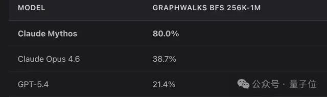 再看Mythos,正是在广度搜索优先的图搜索测试GraphWalks BFS中,超越对手GPT5.4最多。