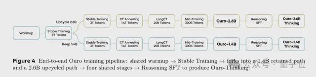 在实验中,团队训练了Ouro系列循环语言模型,内置了循环思考。