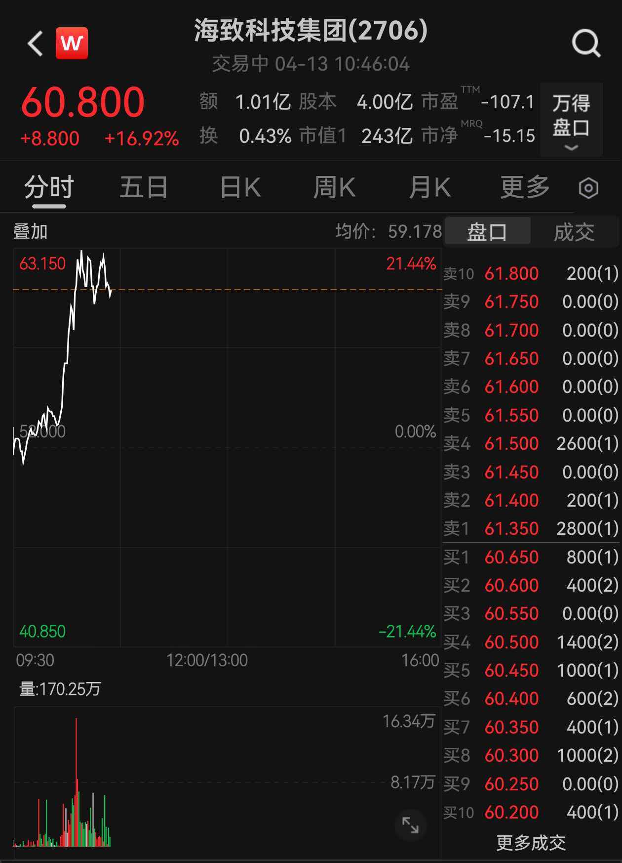 上证报中国证券网讯(记者 于祥明)被称为“AI除幻第一股”的海致科技集团4月13日盘中一度上涨超21%。