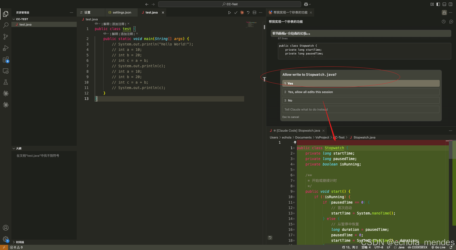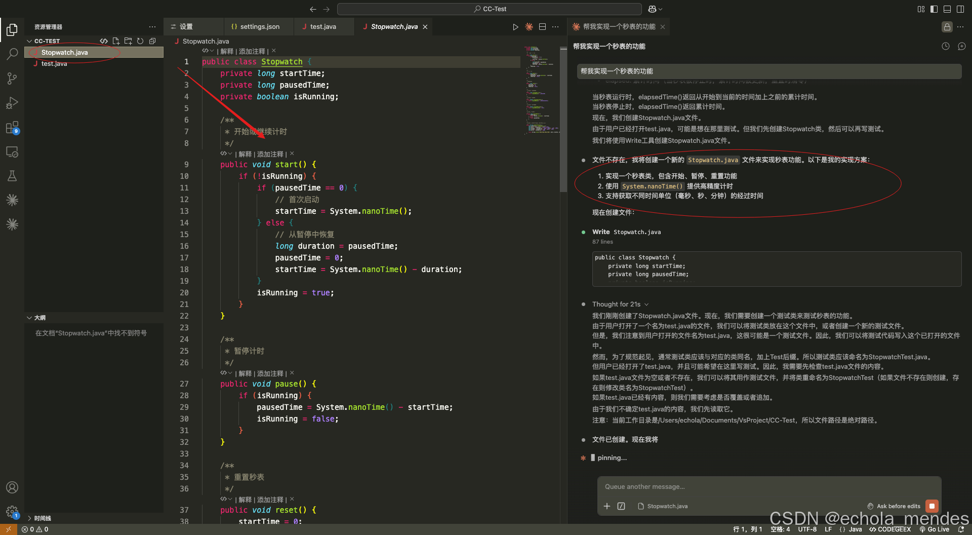 选择Yes后,自动在左侧文件夹下创建文件Stopwatch.java