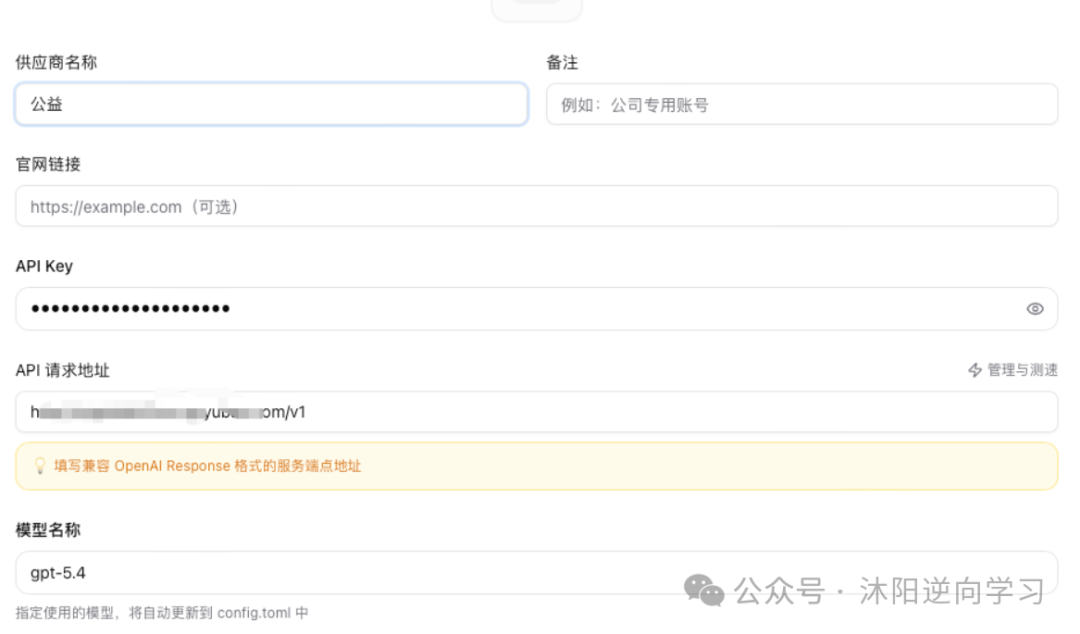 CC Switch里新增一个Codex供应商 - 4. 填入你的中转站