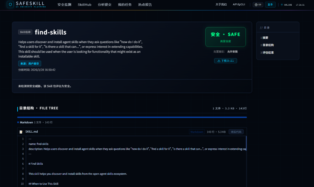 浏览安全Skill市场: https://safeskill.qianxin.com/skillhub