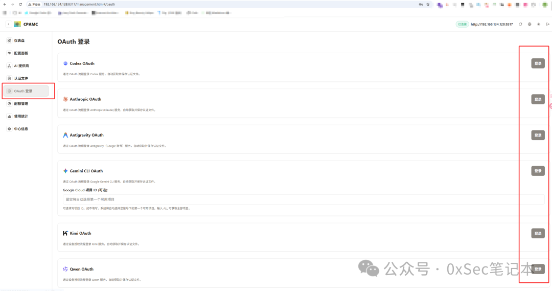 api-keys这里填的不是花钱买的 API Key,而是你网页版登录后浏览器里能拿到的 OAuth Token。这就是”把网页版额度变 API”的魔法所在。
