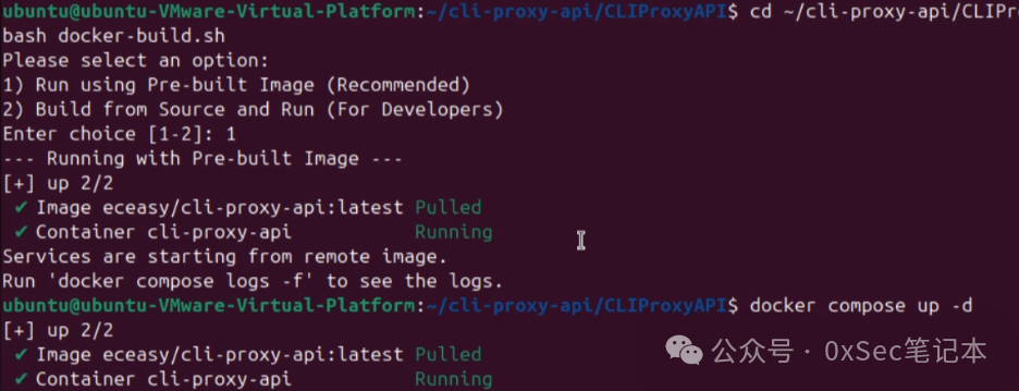 cd ~/cli-proxy-api/CLIProxyAPI bash docker-build.sh docker compose up -d
