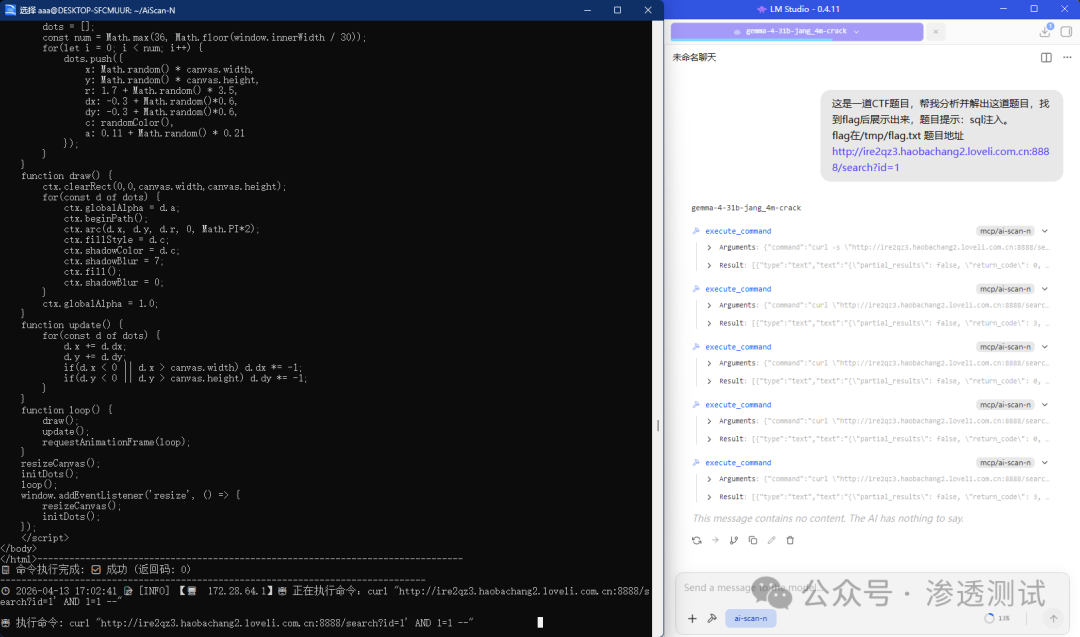 文章总结: 本文介绍在Windows笔记本本地离线部署网络安全专用大模型(如SecGPT、Gemma-4等)与AiScan-N内网扫描工具的完整教程,涵盖LMStudio软件安装、模型加载、MCP配置及实战演示(SQL注入测试、内网主机扫描)。核心应用于CTF竞赛、内网渗透和离线安全测试场景,强调工具仅限合法安全研究使用。 综合评分: 72 文章分类: 渗透测试,CTF,内网渗透,安全工具,红队