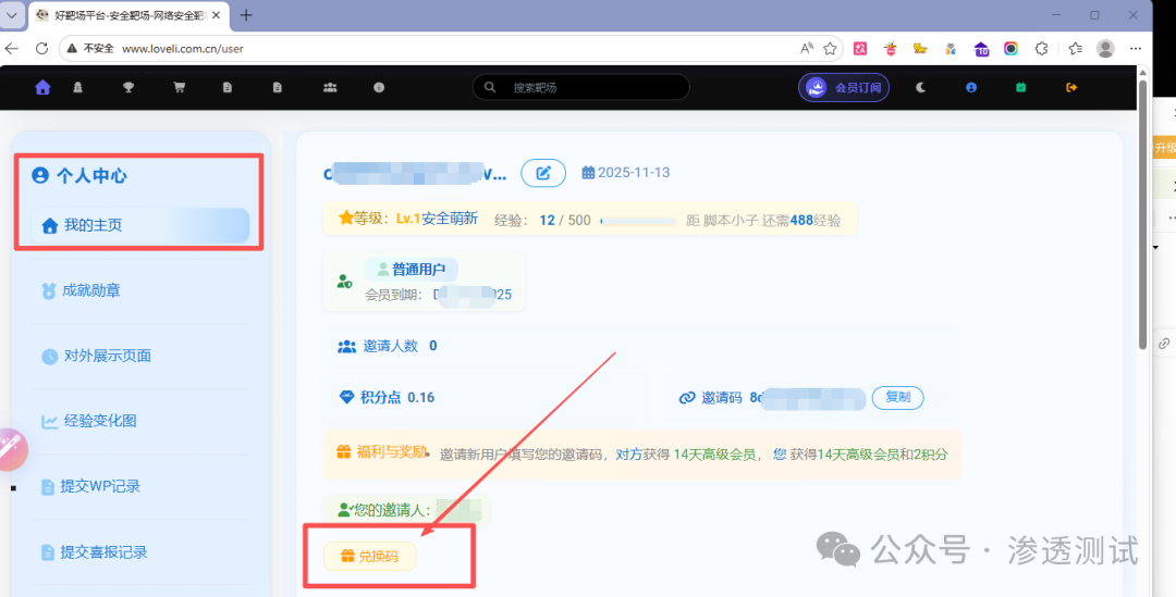 好靶场【高级会员】兑换码,登录系统访问个人中心