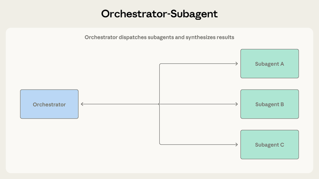 - 编排器-子智能体(Orchestrator-subagent):适用于任务边界清晰、可明确拆解为子任务的场景