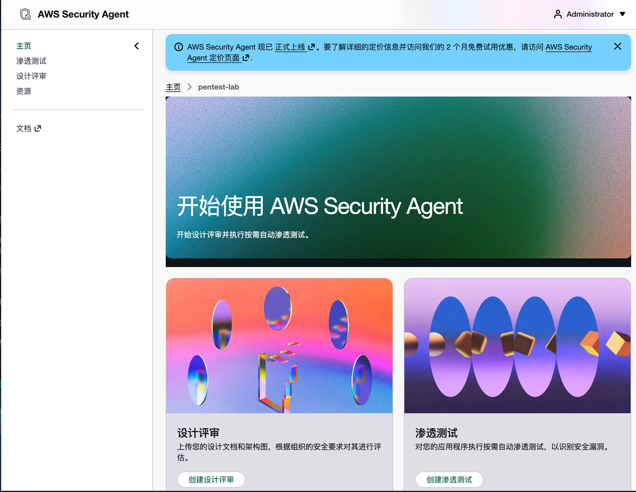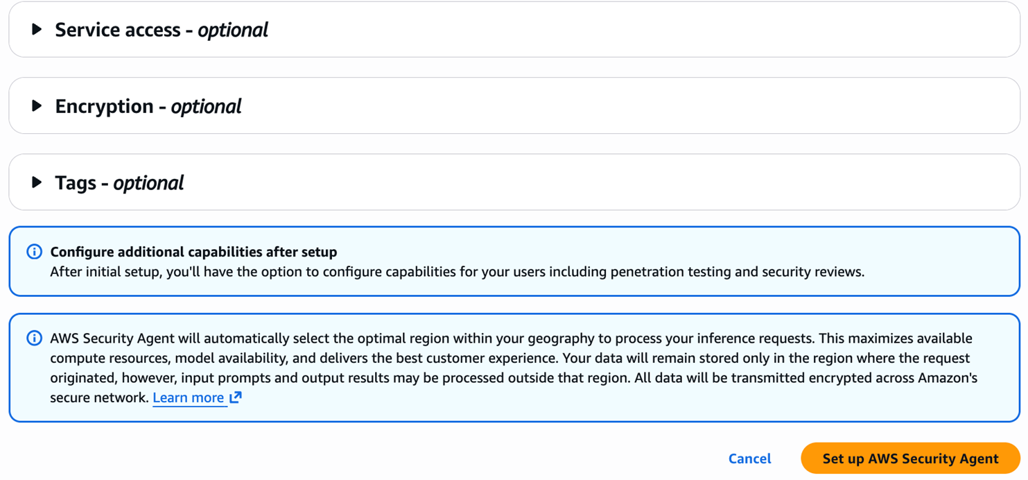 注意,在账号中第一次配置,显示“Set up AWS Security Agent”: