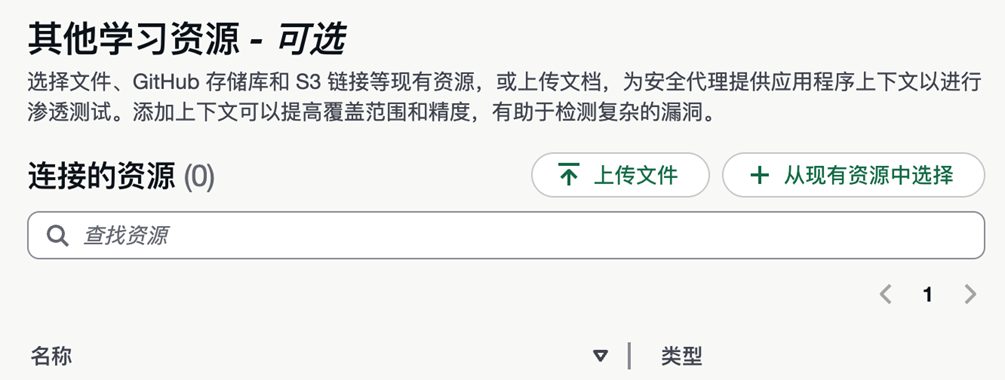 上传应用的上下文材料——源代码、API 文档(OpenAPI/Swagger)、架构图、威胁模型等。Agent 分析这些材料后能更深入地理解应用的业务逻辑,生成更有针对性的测试用例。