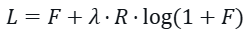 $$L = F + lambda cdot R cdot log(1 + F)$$
