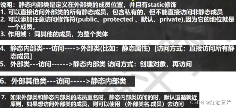 对于5,类方法不能访问成员变量和成员方法,静态方法只能访问静态成员。