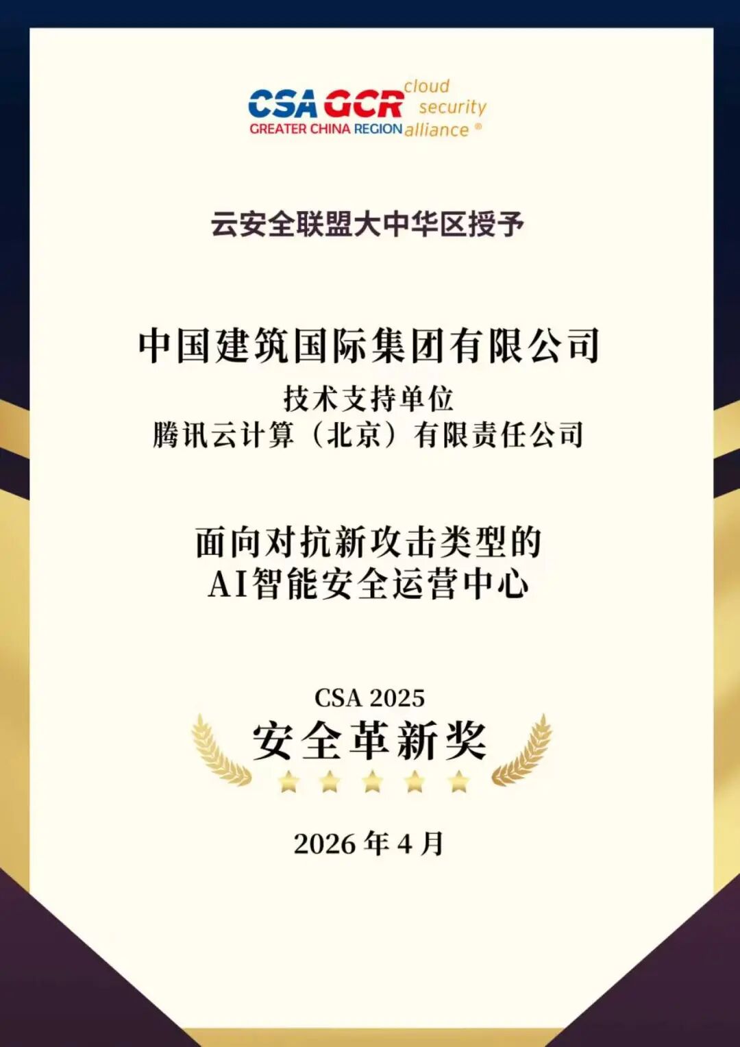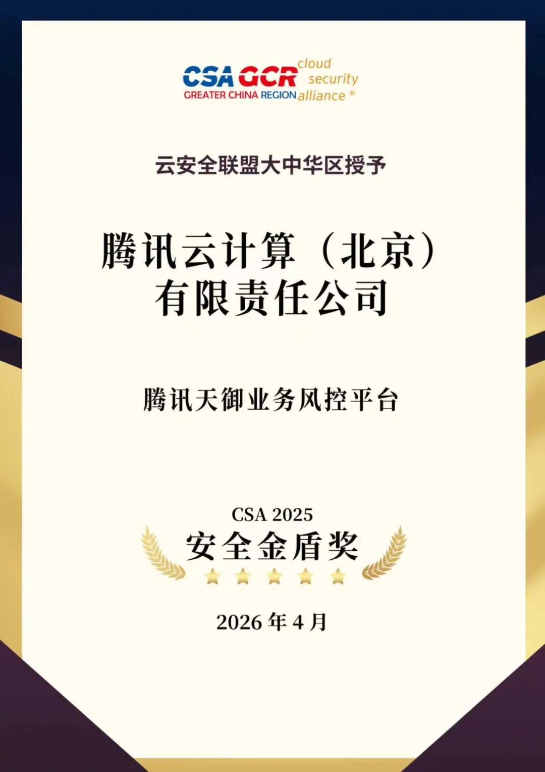 前两天,腾讯云的客户们——中国建筑国际集团有限公司、天津经纬恒润科技有限公司、顺丰科技有限公司在第九届CSA大中华区大会暨前沿人工智能安全峰会上,荣获安全革新奖;腾讯天御业务风控平台也拿到了CSA安全金盾奖。