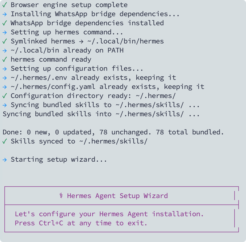 curl -fsSL https://raw.githubusercontent.com/NousResearch/hermes-agent/main/scripts/install.sh | bash
